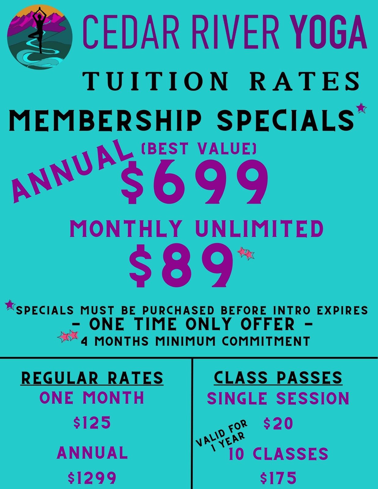 *Specials must be purchased before Intro expires; 4 month minimum commitment*