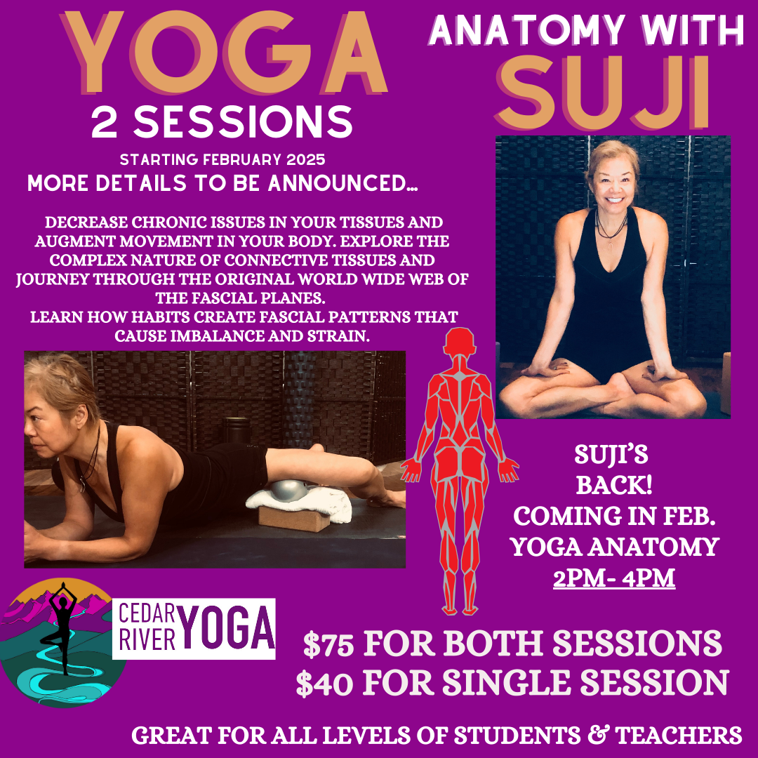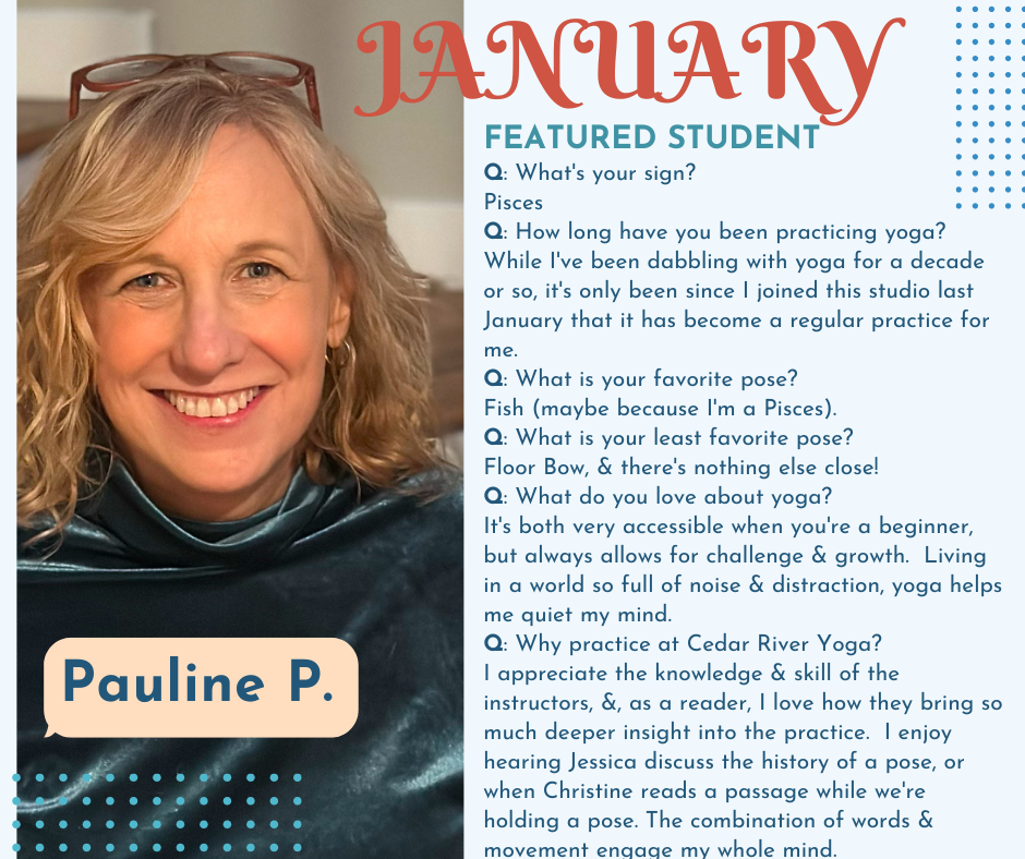 Happy New Year to our wonderful community! As we see conclusion to 2024, we reflect on our truly transformative first year of operation. We are in awe of ALL the incredible people we've met & collaborated with, the informative & fun events we've hosted, all the lessons learned, and the special time, energy, & space we've shared together - - thank you for making Cedar River Yoga a truly wonderous place. Alas, with every ending a new beginning is offered, and we are so excited to continue our path of progression & growth! We have so many good things in store to share with you in the New Year! Please enjoy classes, the studio, and our many special workshops, events, sales, & offerings this month to help ring in a new year of wellness!
